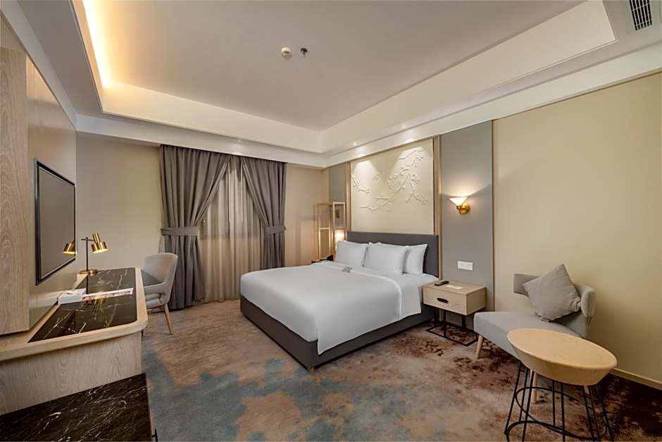 The spacious air-conditioned suite features a flat-screen TV, a mini-bar, a tea and coffee maker and a seating area. The unit has 1 bed.